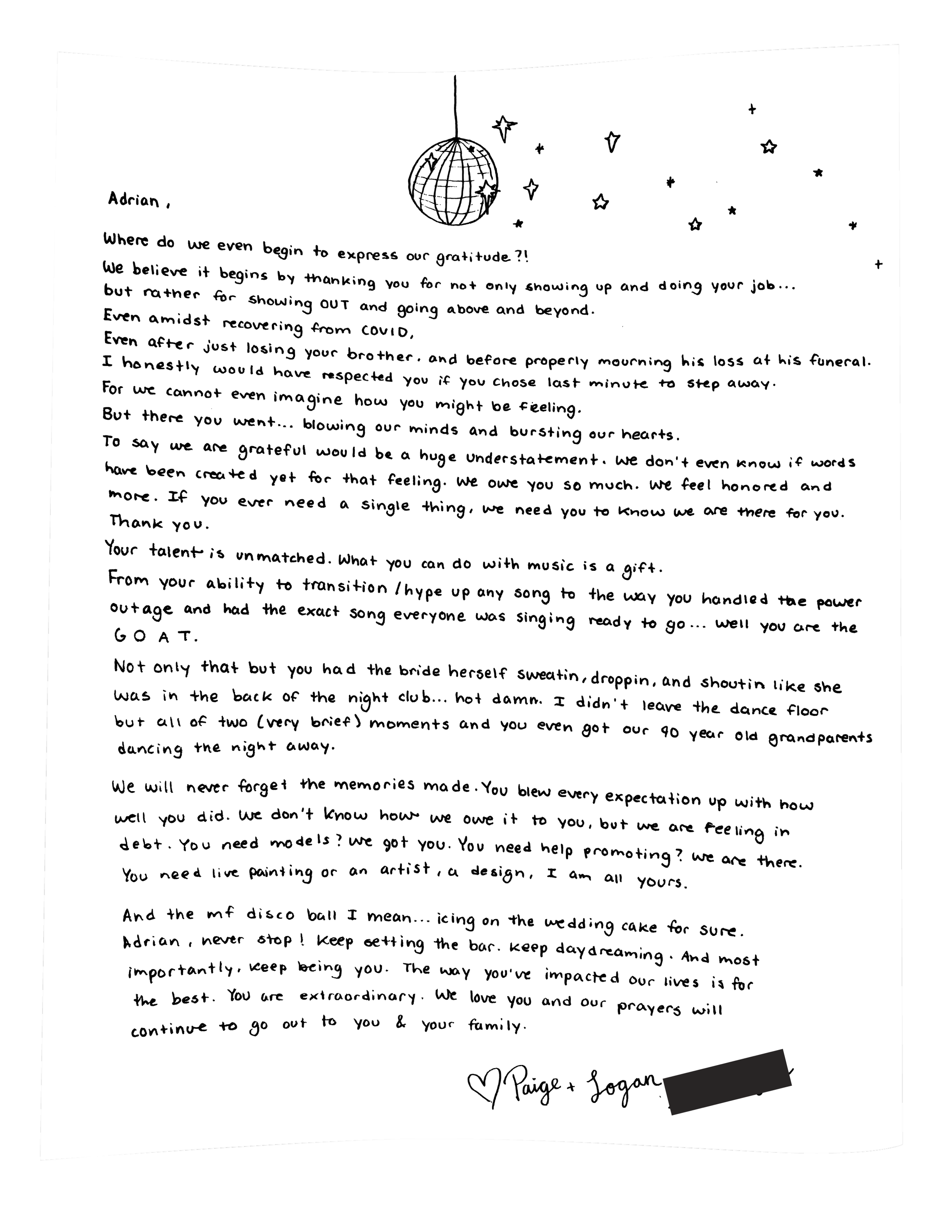 View fullsize “yOUR TALENT IS UNMATCHED. WHAT YOU DO WITH MUSIC IS A GIFT…wE WILL NEVER FORGET THE MEMORIES MADE.”— Paige & Logan
